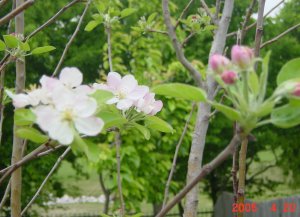 りんごの花は、とても可憐です。焦点を真ん中の花にあわせてしまったので
