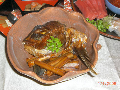 鯛のかぶと煮は ごぼうと炊き合わせて。