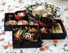 豚肉の醤油煮 一富士、二鷹、三なすびをならって、富士は なますにちょと入れたりんご。 鷹は 同じくなますの鷹のつめ。なすびは 芥子づけで。 お赤飯もおめでたい日には やっぱりね。 縁起かつぎは 祖母や母ゆずりです。