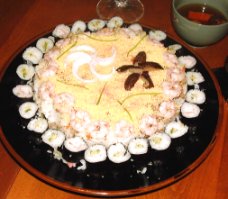 お寿司のケーキ(海老、蓮根、干瓢、シイタケ、にんじん 高野豆腐など)