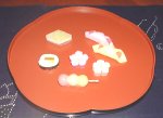 用意していた材料を使わないで 飾り付けました。白く見えるのはうずらの卵。